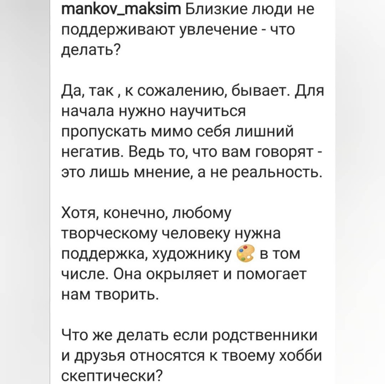 Это очень частое явление…И , иногда наши близкие просто рубят на корню желание творчески проявиться.